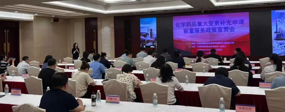 为服务辖区内医药产业高质量发展、深层次助推“创新药物孵育转化实景图”增量增效,6月5日,第一监管办联合市药化审查中心及市药化审查中心滨海办公室共同举办化学药品重大变更补充申请前置服务政策宣贯会,邀请辖区45名企业代表参加,覆盖辖区化学药品(含原料药)生产企业。