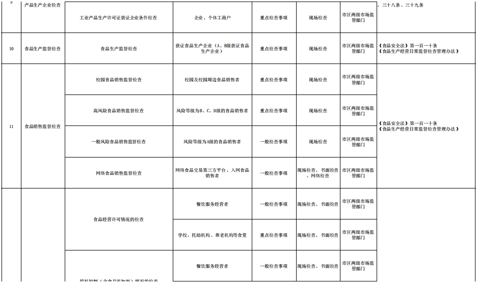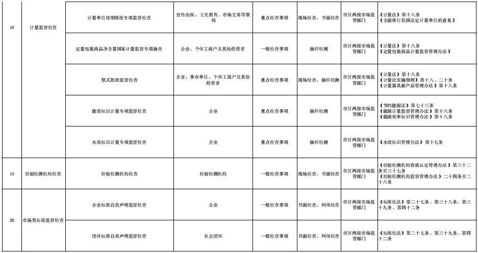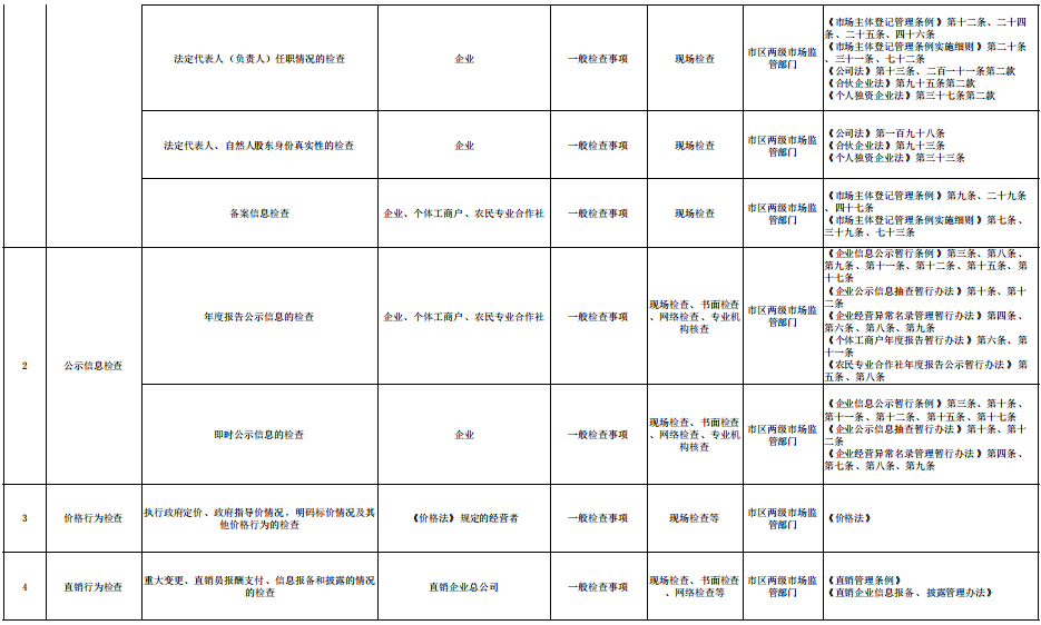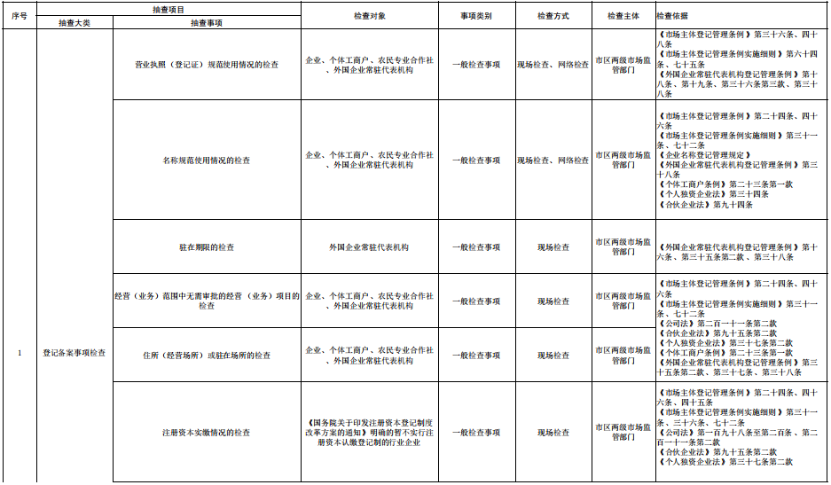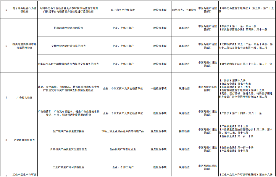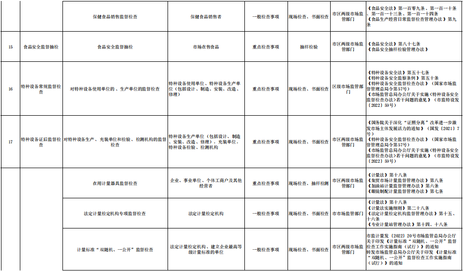 市场监管部门随机抽查事项清单(2023年版)
