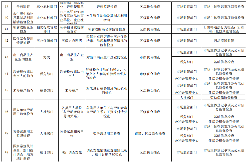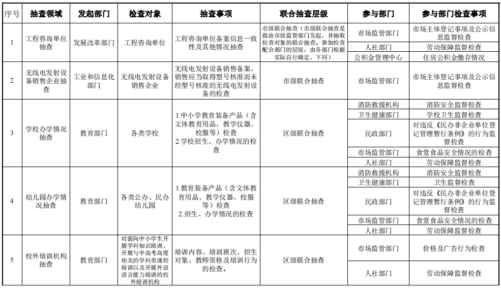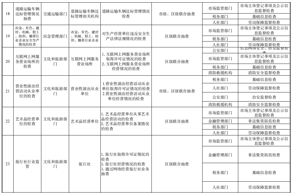 天津市市场监管领域部门联合抽查事项清单(2023年版)