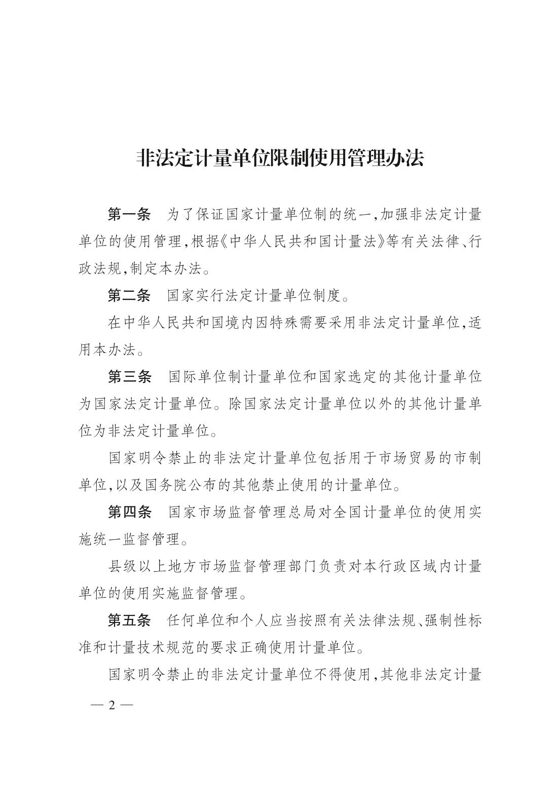 国家市场监督管理总局第90号令非法定计量单位限制使用管理办法