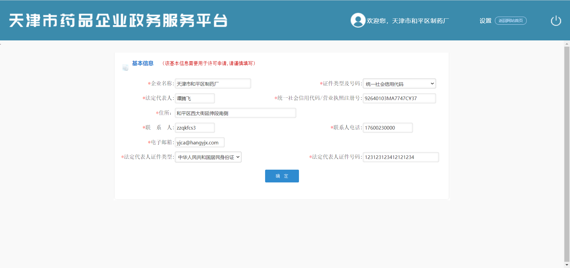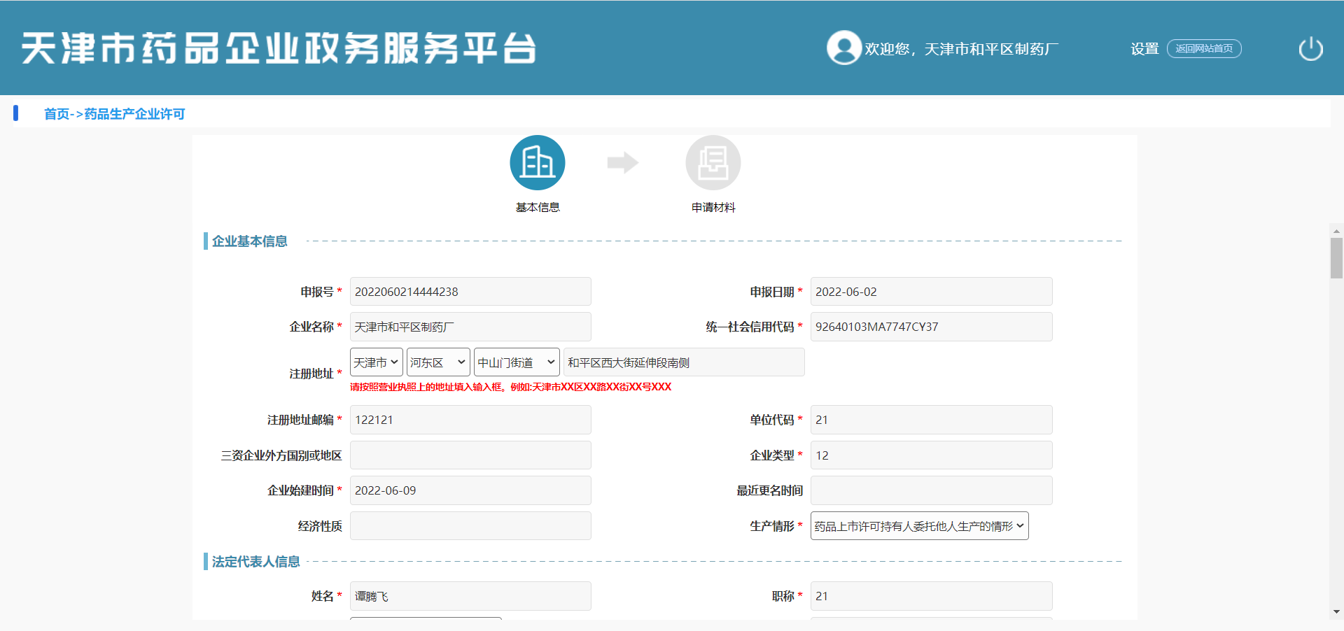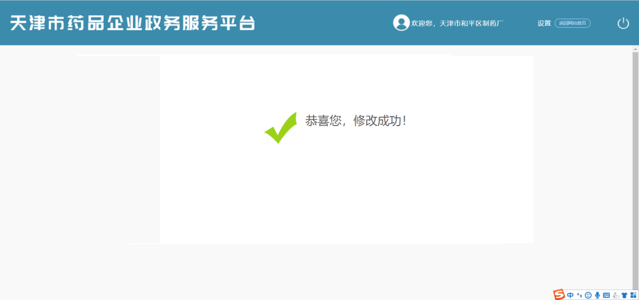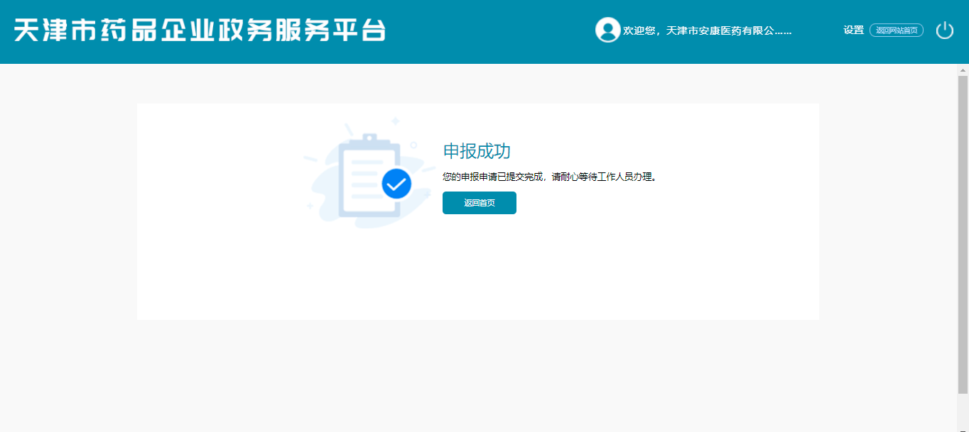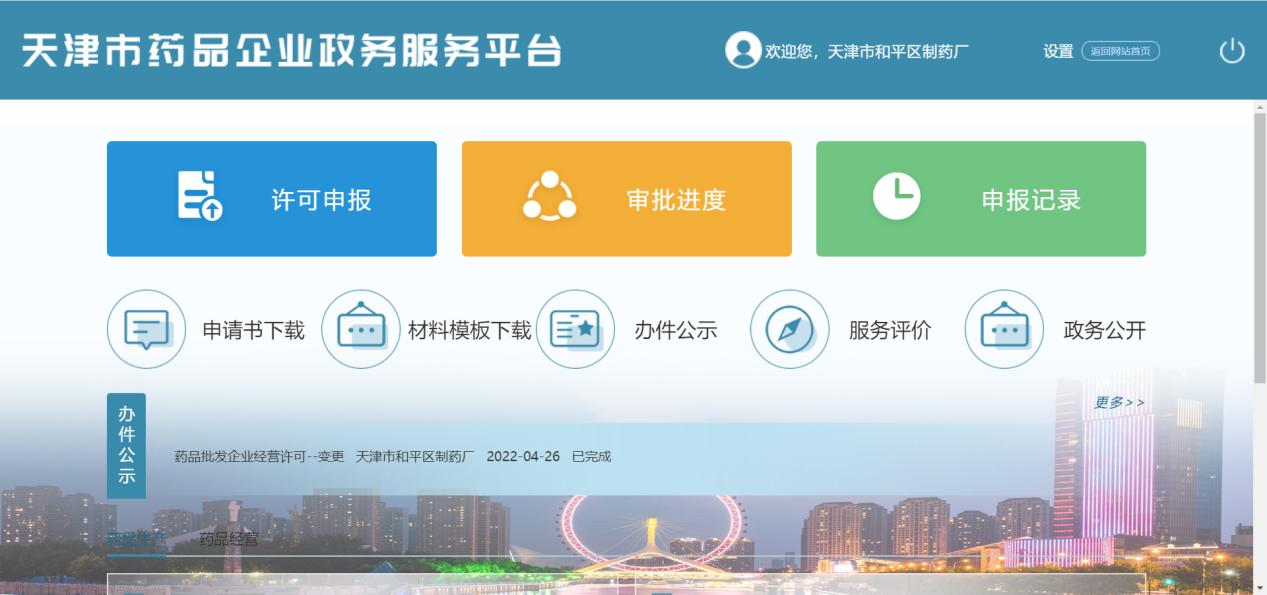 登录成功后,系统进入天津市药品企业政务服务平台国产自拍。如图下图: 登录成功页面。