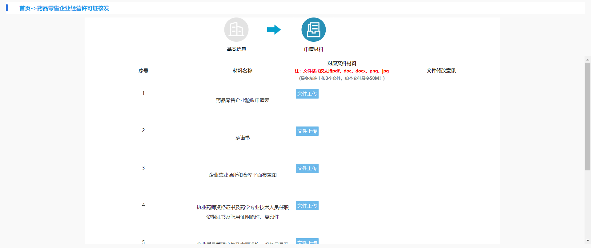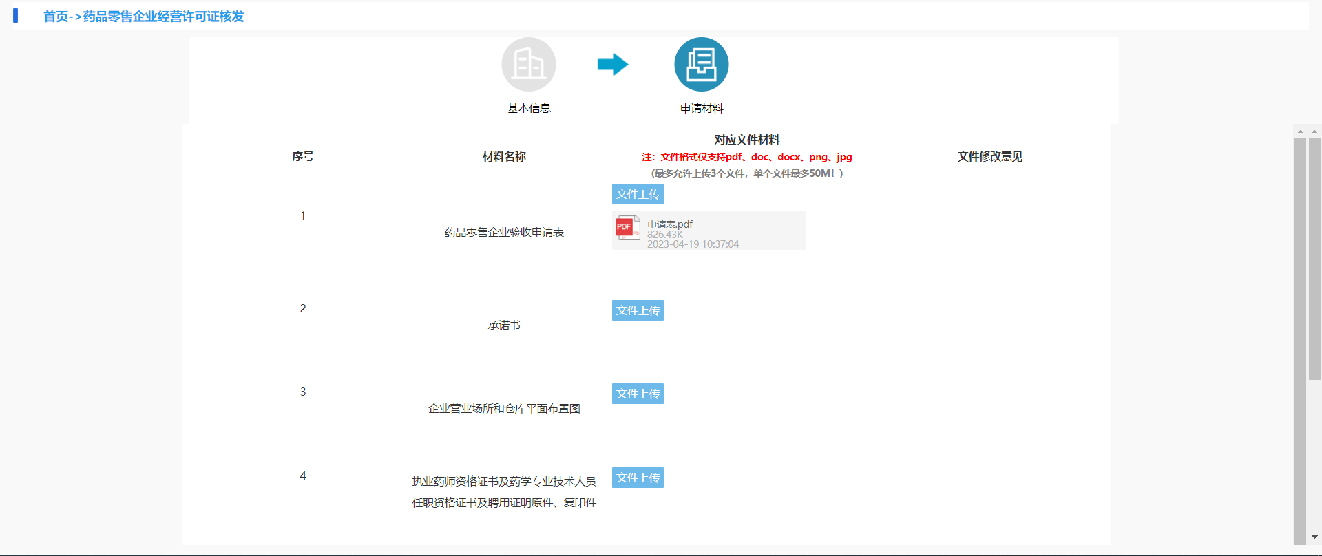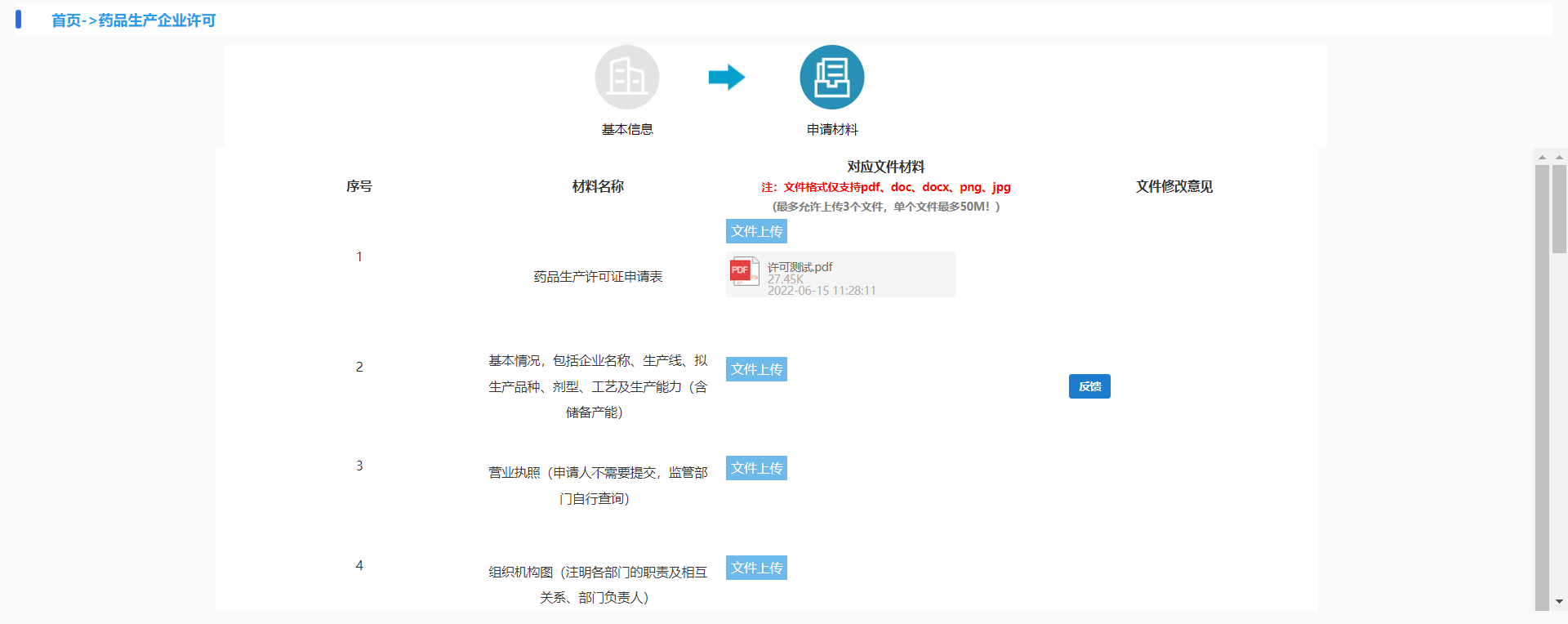 文件上传的格式仅支持pdf、doc、docx、png、jpg;每一条最多上传3个文件,单个文件大小最多50M。