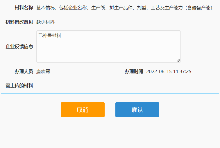 补正材料:是需要补充材料的数据。