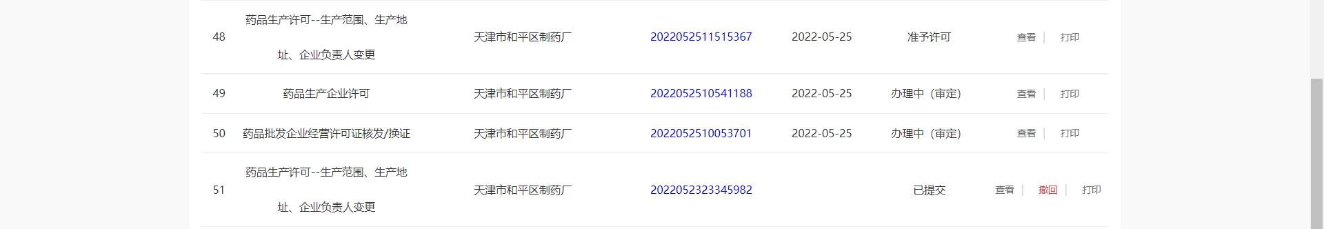 办理状态为准予许可:可进行【查看】、【打印】操作(同上)