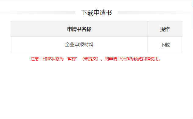 点击【下载】则下载已有的申请书。