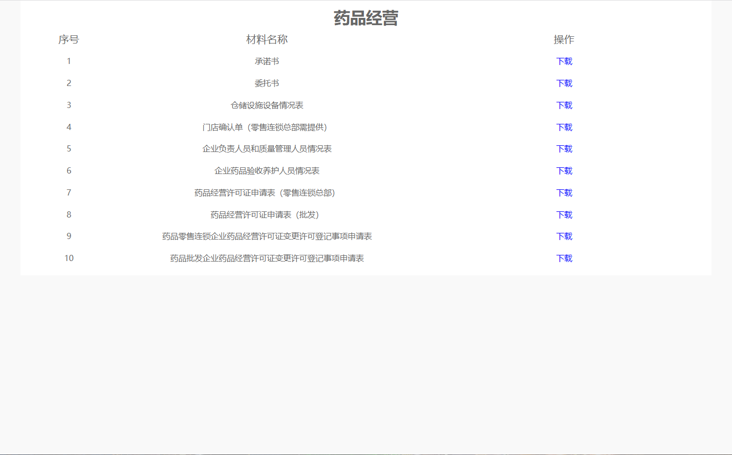 点击列表中的【下载】直接下载该条数据的申请表。