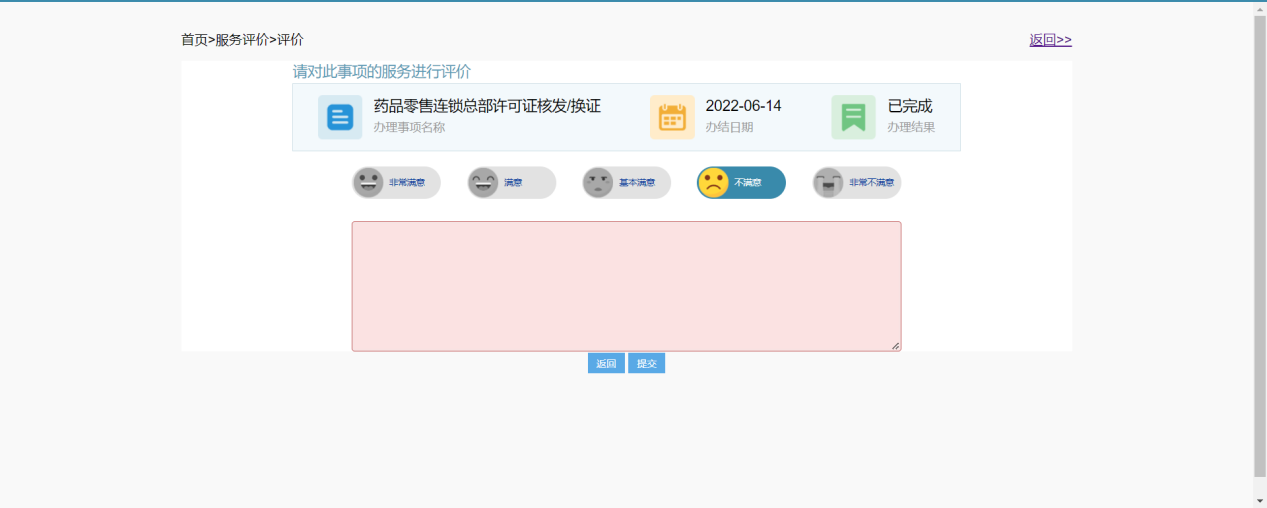 选择不满意或非常不满意,需要填写不满意原因,如下图: