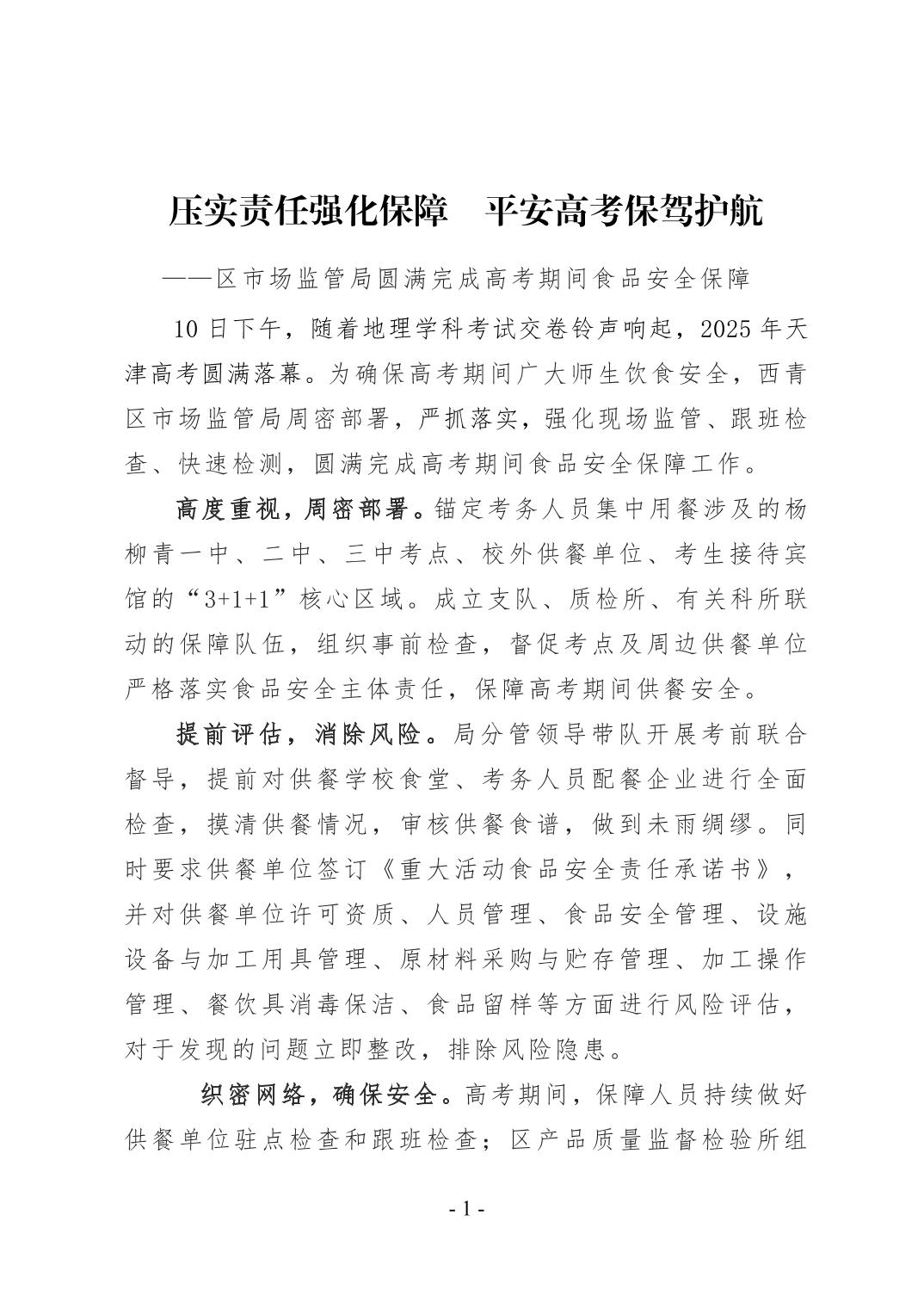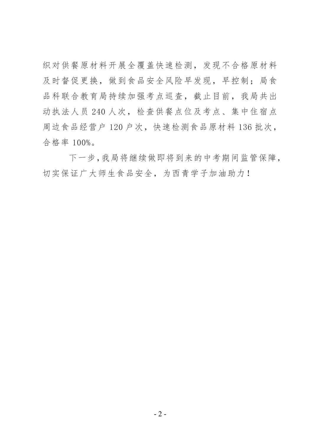 西青区市场监管局圆满完成2025年高考食品安全保障任务